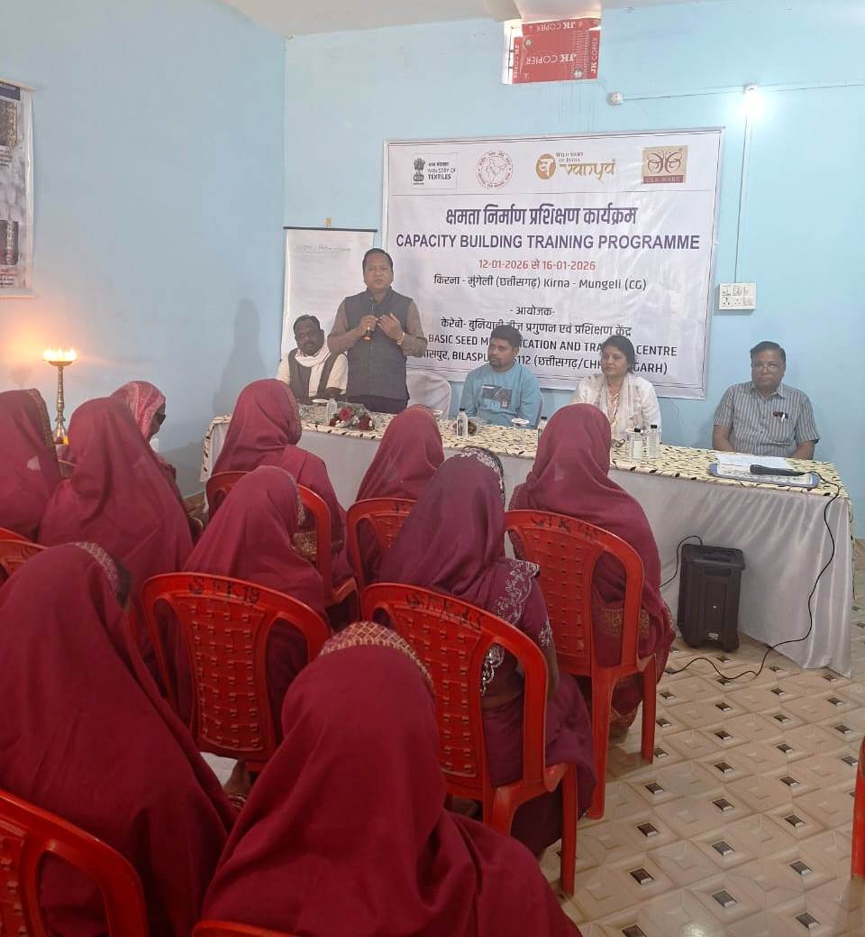 कोसा पालन के क्षेत्र में वैज्ञानिक पद्धतियों को बढ़ावा देकर उत्पादन एवं गुणवत्ता में उल्लेखनीय वृद्धि करने तथा हितग्राहियों को आधुनिक, वैज्ञानिक एवं व्यावहारिक ज्ञान से सशक्त बनाने के उद्देश्य से विकासखंड पथरिया अंतर्गत ग्राम किरना में पाँच दिवसीय क्षमता निर्माण प्रशिक्षण कार्यक्रम का आयोजन किया जा रहा है। यह प्रशिक्षण कोसा पालन से जुड़े हितग्राहियों के कौशल उन्नयन, तकनीकी दक्षता बढ़ाने और उनकी आय में स्थायी वृद्धि सुनिश्चित करने की दिशा में एक महत्वपूर्ण पहल मानी जा रही है।