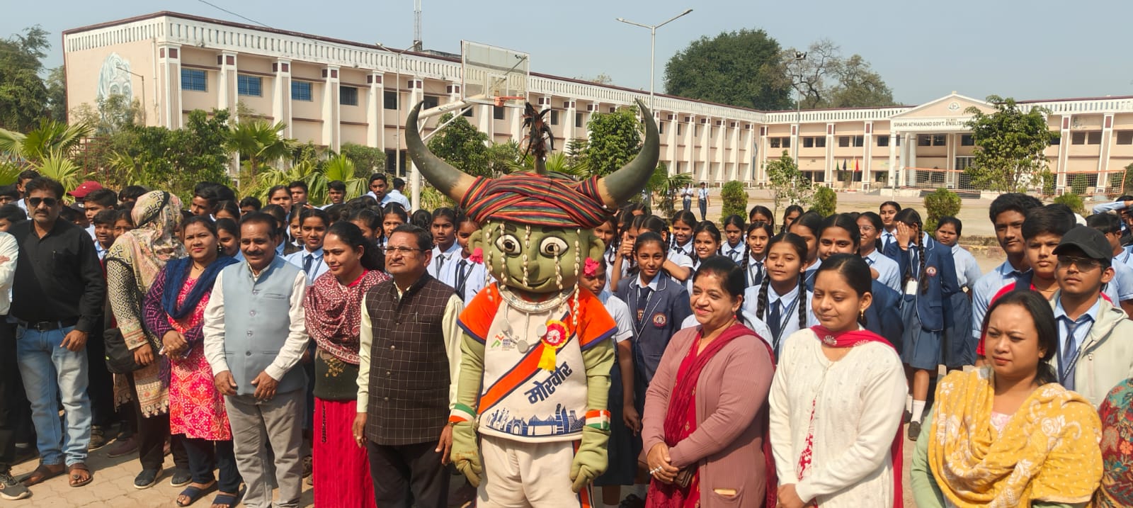 मशाल गौरव रथ यात्रा का स्वागत स्वामी आत्मानंद अंग्रेजी माध्यम विद्यालय, दाउपारा परिसर में उत्साह और उमंग के साथ किया गया। इस अवसर पर खेलो इंडिया ट्राइबल गेम्स के शुभंकर मोर वीर विशेष आकर्षण का केंद्र रहा। विद्यार्थियों ने शुभंकर के साथ फोटो खिंचवाए और खेलों के प्रति अपने उत्साह का परिचय दिया। कार्यक्रम में विद्यालय के प्राचार्य डॉ. आई.पी. यादव, शिक्षकगण तथा बड़ी संख्या में छात्र-छात्राएं उपस्थित रहे।